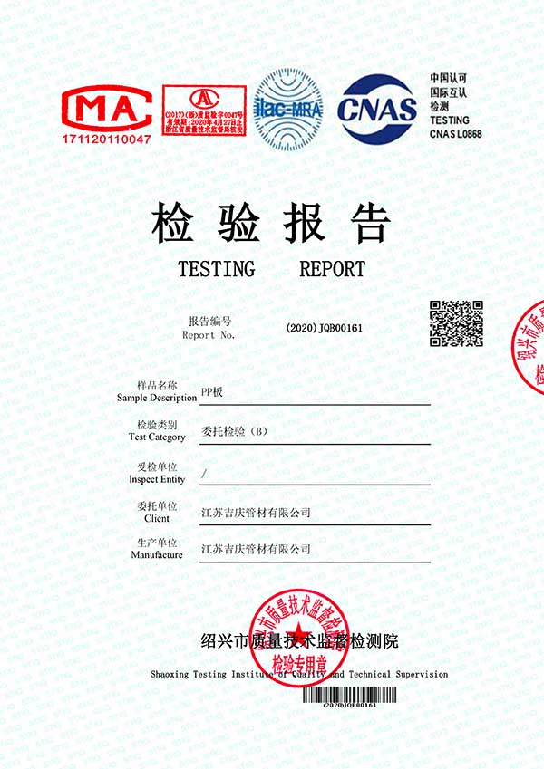 江蘇吉慶管材集團有限公司創(chuàng)辦于2010年2月,是pp管,pp管材,pp管件,pp風管,frpp管,frpp管材,pph管,pph管材,pph管件,pph風管,pvdf管,pvdf管材,pp儲罐,pp板材的專業(yè)化生產(chǎn)企業(yè)。公司占地30余畝,擁有各類資產(chǎn)8000余萬元,專業(yè)技術人員20余人,管材生產(chǎn)線10條,管件生產(chǎn)線11條,具備了10000余噸各類防腐塑料制品的年生產(chǎn)能力。公司通過了ISO9001-2000質(zhì)量體系認證,同時被評為AAA信用單位,2018年公司被評為高新技術企業(yè),此后陸續(xù)取得安全生產(chǎn)管理證書等榮譽。公司位于水上花園城市----江蘇省揚中市八橋鎮(zhèn)永福路18號,交通便捷,可直接導航至公司園區(qū)內(nèi)。公司全體員工將以高度的敬業(yè)精神,嚴格的質(zhì)量控制理念和科學的管理方法,及時周到的服務,竭力為我國塑料管道在各領域的推廣和應用作出更大的貢獻!